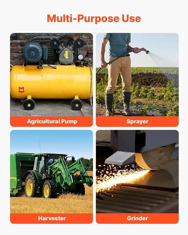 Various Applications: VEVOR general purpose motor is ideal for DIY projects and repair replacements, providing versatile and powerful functionality for water pumps, agricultural machinery, and general equipment