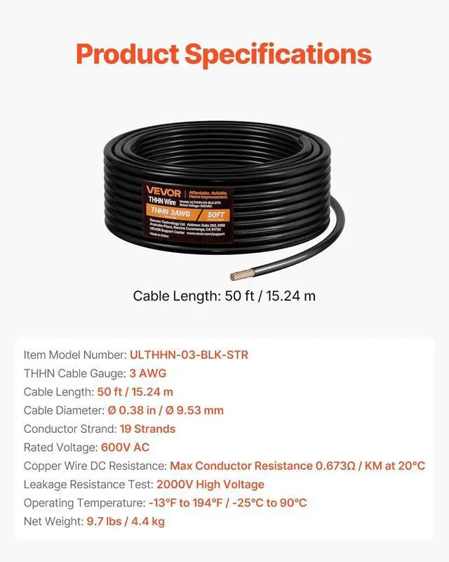 Premium Wire, Built to Last: Our THHN wire features durable dual-layer insulation with a dampproof outer jacket that stands up to rain and sun exposure. The convenient 50-foot pre-cut lengths slash splicing points, cutting down on failure risks