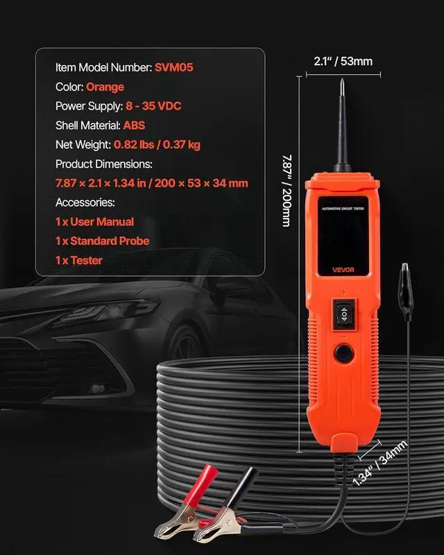 Versatile Circuit Tester: Designed for 065 VDC systems, this automotive circuit tester works with all 835 DCV vehicle circuits. It supports testing polarity, continuity, signal circuit, component activation, poor ground, and short circuit tracking