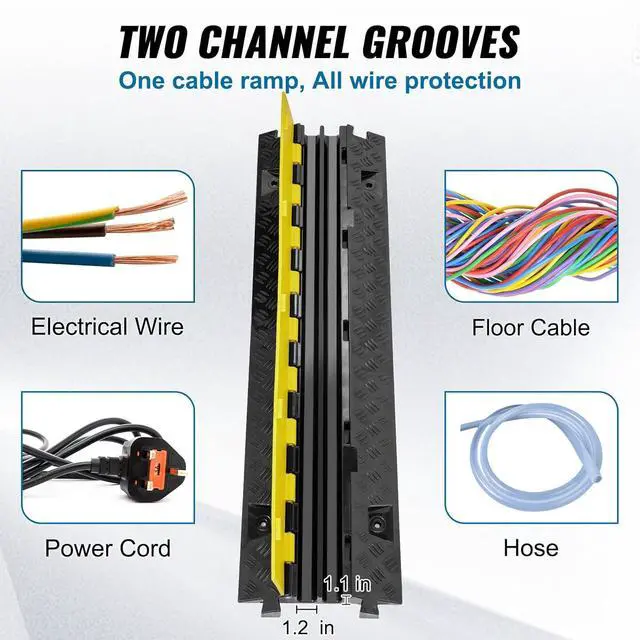 5 Pack 2 Channel: Are you tired of tangled wires? Well, get ready to prevent an accident before it happens! You will receive 3 packs of cable protector ramps measuring 36.14 x 9.84 x 1.69 in. The Dual 1.2 x 1.1 in channel groove design provides enough space for electrical wires, power cords, hoses, and floor cables, protecting them from pedestrians and vehicles.