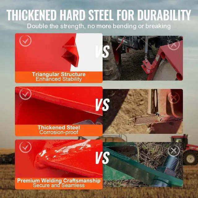 Heavy-Duty Solid Steel: The VEVOR tractor ballast box is made of heavy-duty thick steel. The upgraded triangular reinforcement structure and excellent welding provides durability and stability, greatly extending its service life. The powder coating on the surface can prevent rust and corrosion.