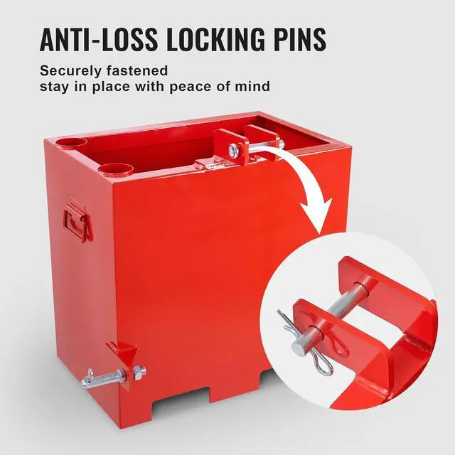 Wide Application: Designed for 3-point category 1 tractor, our ballast box is compatible with most popular hitch farm machinery models, and fits 2" hitch pins (trailer ball receiver not included). Provides counterweight for tractors or other farm equipment, enhancing their stability and balance.