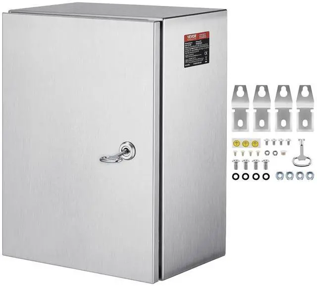 VEVOR Steel Electrical Box 16" x 12" x 8" Electrical Enclosure Box 304 Stainless Steel Electronic Equipment Enclosure Box IP65 Weatherproof Wall-Mounted Metal Electrical with Mounting Plate