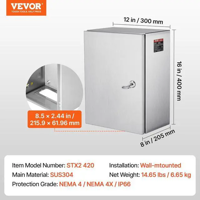 • IP66 Waterproof Grade: The electrical enclosure box complies with NEMA 4X & IP66, which has excellent water resistance, and dust resistance. The sealing strip has excellent sealing performance. Direct us as the first option when unfulfilling your demands. VEVOR will resolve any feedback.