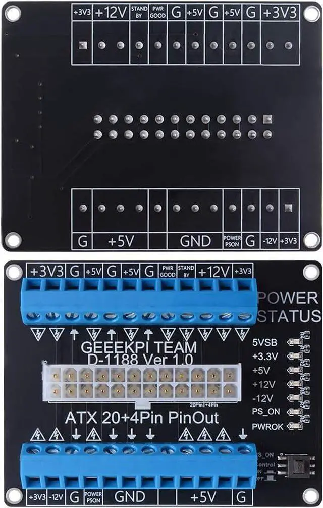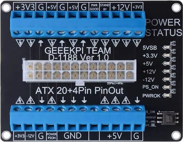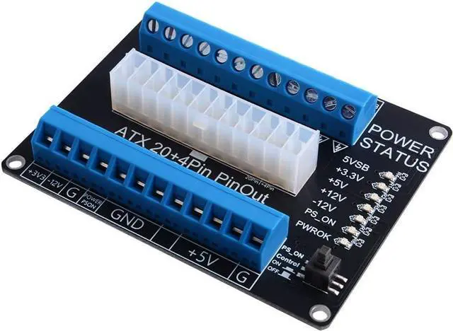 24-pins Standard ATX Connector, support 20 / 20+4 / 24 pins wire header. Support ATX/STX power supply With latching button switch to control power ON/OFF. Each channel has independent indicator LEDs One-time lock button design