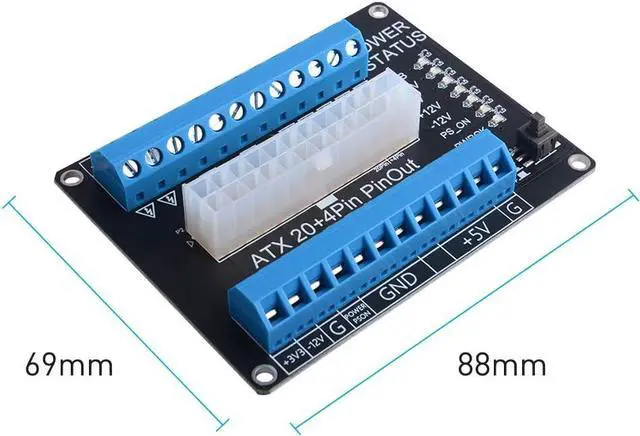 24-pins Standard ATX Connector, support 20 / 20+4 / 24 pins wire header.