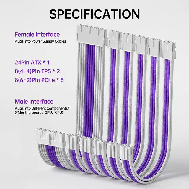 Ultra High Quality AssuranceNew power supply cable set is designed and manufactured with premium materials for better looks and sturdiness. A variety of colors are available for you to choose from, DIY your PC freely, match your computer host as you like, and make your computer unique from now on!