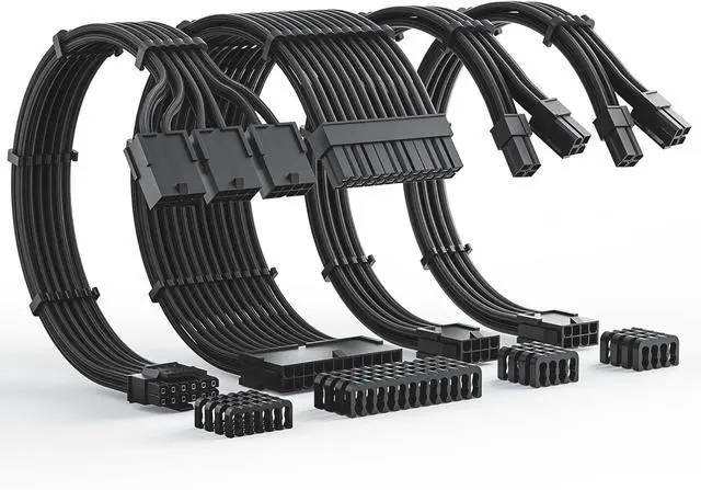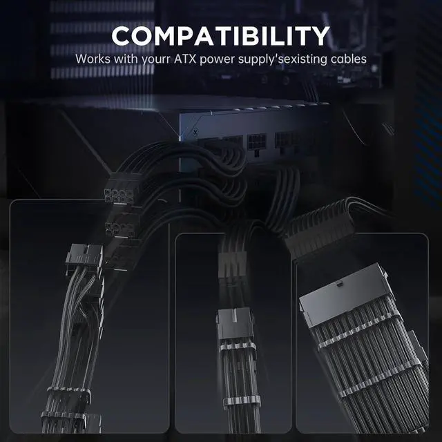 This 12VHPWR extension cable kit provides 4 pieces to cover your main system cables and uses universal ATX connectors that are compatible with any standard ATX power supply unit cables, allowing you to manage cables with ease!