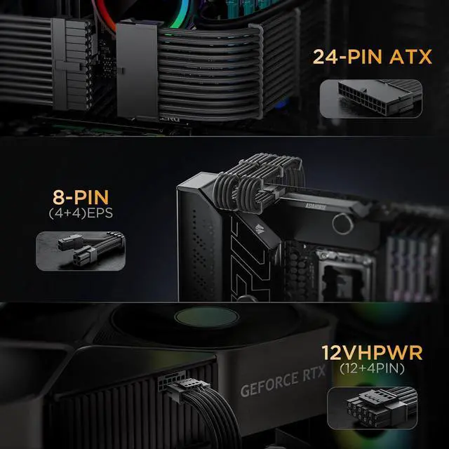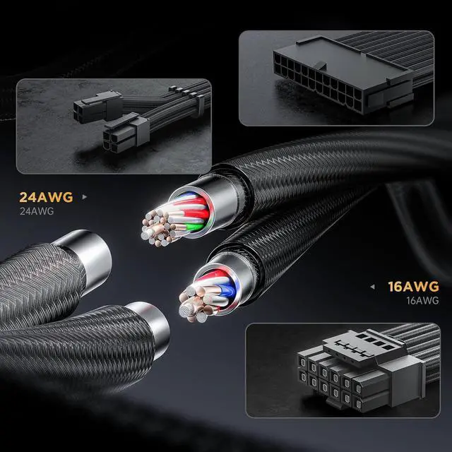 Easy Way to Custom Your PC Build Designed for PCIe 5.0 Graphics Card Stable Current and Voltage Alloy Copper Terminals Work with Original Power Cable Easy Cable Management Included Cable Types:
