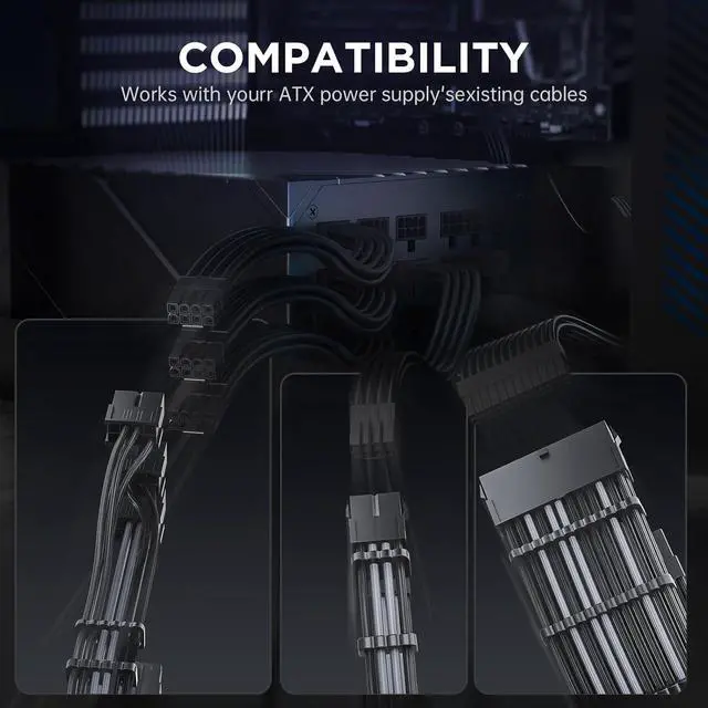 This12VHPWR extension cable kit provides 4 pieces to cover your main systemcables and uses universal ATX connectors that are compatible with anystandard ATX power supply unit cables, allowing you to manage cableswith ease!