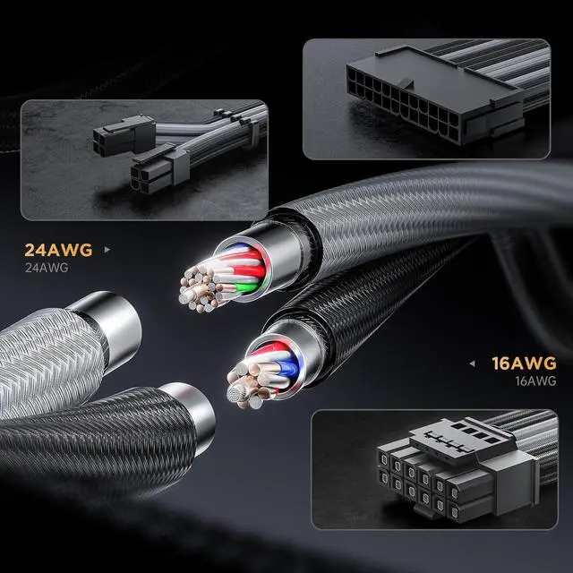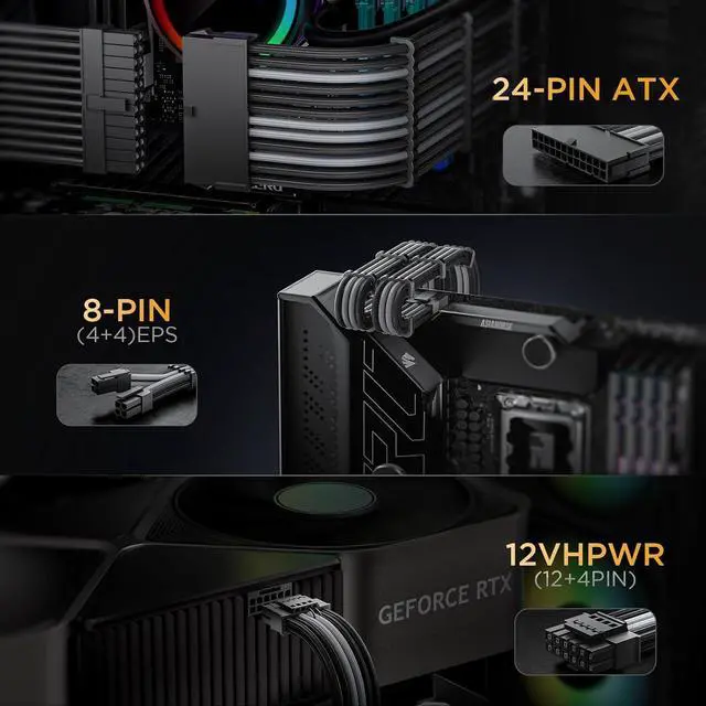 Easy Way to Custom Your PC Build Designed for PCIe 5.0 Graphics Card Stable Current and Voltage Alloy Copper Terminals Work with Original Power Cable Easy Cable Management Included Cable Types: