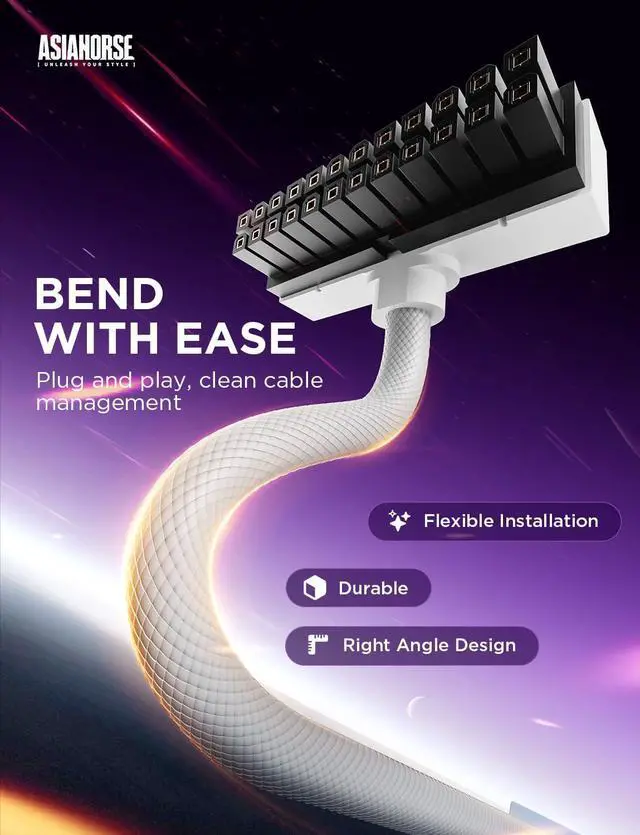 **Compatibility**: Suitable for the majority of mainstream 24pin power supply motherboards and power sources. (It is an extension cable, not a modular cable, and it needs to be used together with the original cable.)