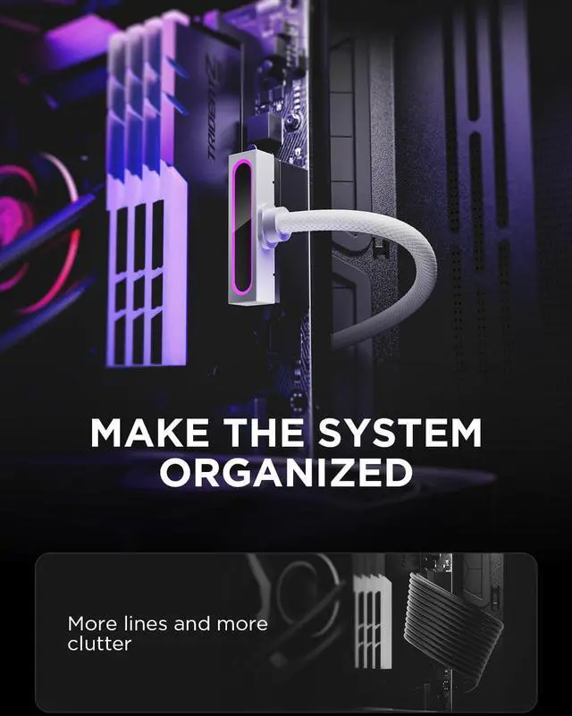 **Integrated Minimalist Design**: Featuring an integrated minimalist style and a 90° right-angle design. There is no need to bend the cable, ensuring full contact with all cable terminals. It's a plug-and-play solution that boosts wiring flexibility and keeps things tidy. Ideal for cable management and PC DIY projects.