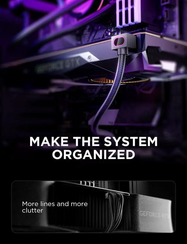 • **Integrated Minimalist Design**: Featuring an integrated minimalist style and a 90° right-angle design. There is no need to bend the cable, ensuring full contact with all cable terminals. It's a plug-and-play solution that boosts wiring flexibility and keeps things tidy. Ideal for cable management and PC DIY projects.
