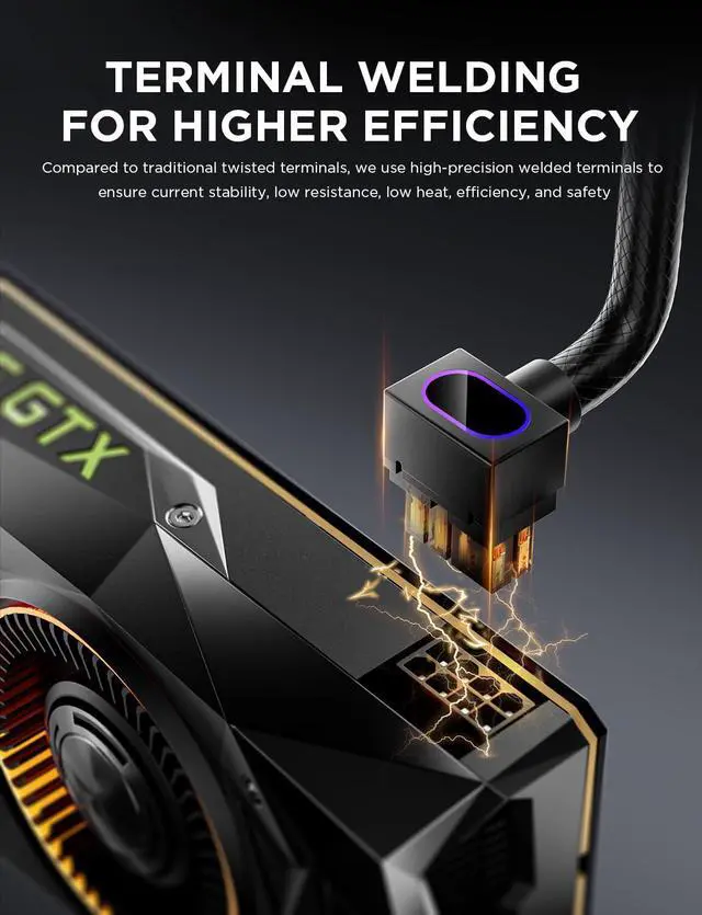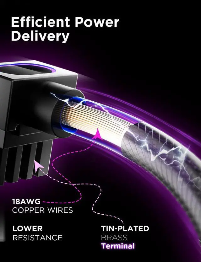 **Efficient Power Delivery**: 8pin, 18AWG cable with copper wire core and Brass Tin Plated Terminal (Resistant to high voltage and high temperature), offering lower electrical resistance. Supports up to 900W power input(single wire) and 2500W Power supply (whole set) , reducing current loss and preventing blue screens.