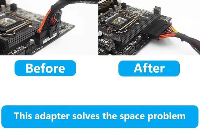 The adapter is designed to change ATX 24-PIN cable installation direction.