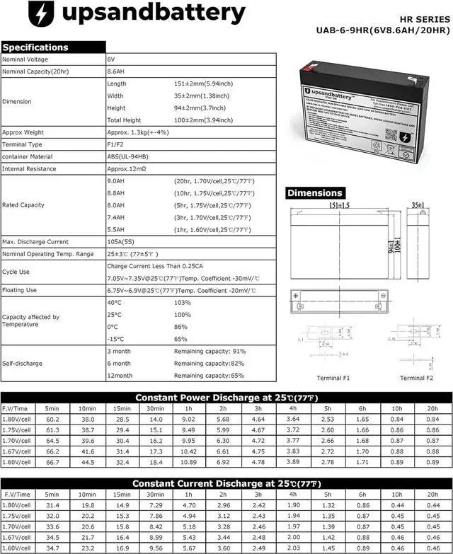 UPSANDBATTERY Compatible Battery for APC RBC18 Replacement Battery Cartridge - High Rate Discharge Series Replacement Battery, Non-OEM