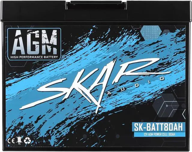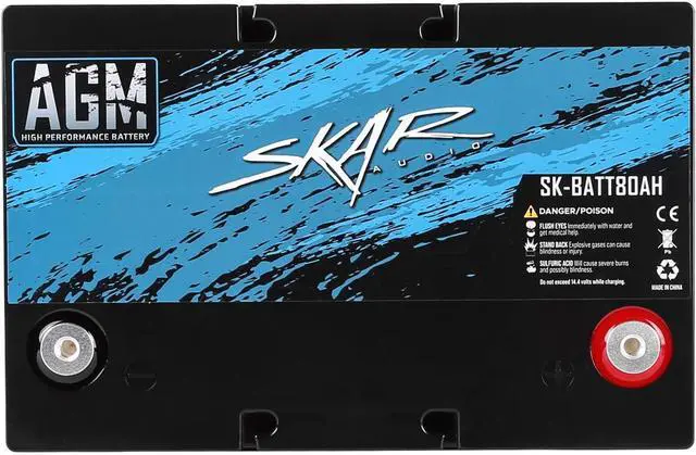 Introducing Skar Audio's latest innovation in car audio power - our AGM High Performance Car Audio Battery. Designed with precision and engineered for excellence, this 12V nominal voltage battery boasts an impressive 80 Amp Hour capacity which ensures a consistent and reliable power supply for your audio system. Built to withstand demanding conditions, its advanced Absorbent Glass Mat (AGM) technology guarantees durability, making it the ideal choice for car audio enthusiasts wanting to push the limits of their audio setups. Elevate your audio experience and let the music play uninterrupted with Skar Audio's commitment to quality and innovation. For additional warnings, safety precautions and information regarding your Skar Audio AGM battery, please refer to the user manual included.