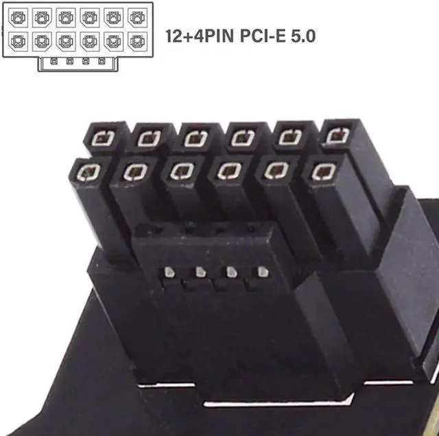 PCI-SIG 12VHPWR H+, including 12 pin power supply terminal, and 4 pin signal terminal on the side, Capable of delivering up to 600W of power.