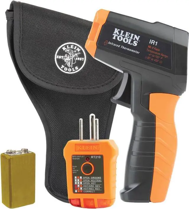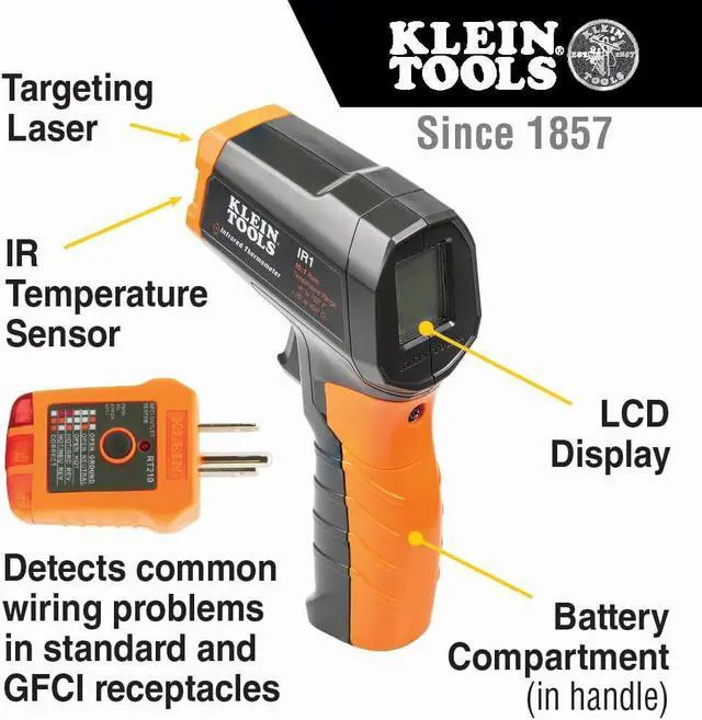 GFCI Outlet Tester (Cat. No. RT210) detects common wiring problems in standard and GFCI receptacles