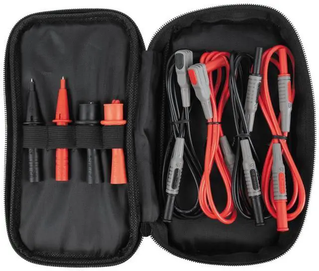 VERSATILE TEST LEADS: Includes one pair of removable universal test lead heads that connect directly to the right-angle leads or the lead extenders
