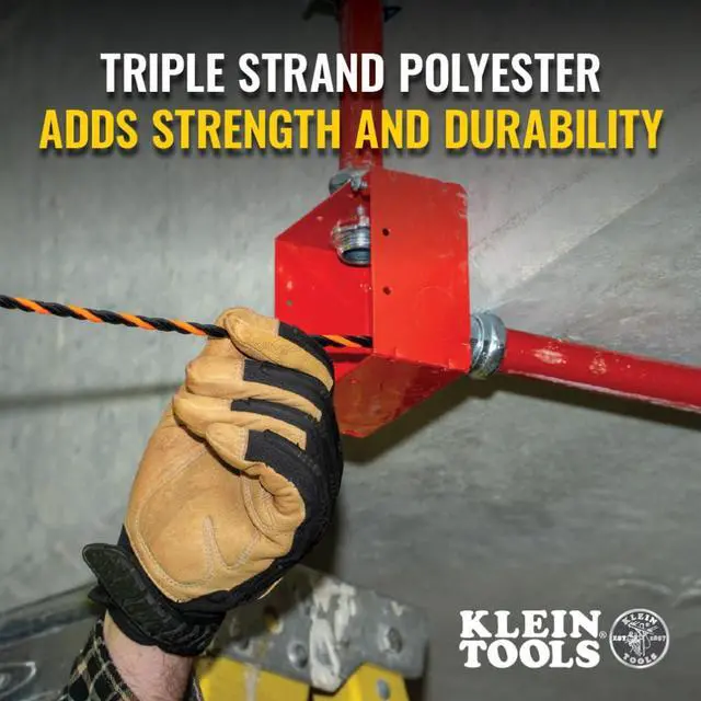 3-STRAND FISH TAPE: Triple strand polyester design provides increased strength and is 4 times more flexible than fiberglass and 8 times more flexible than steel