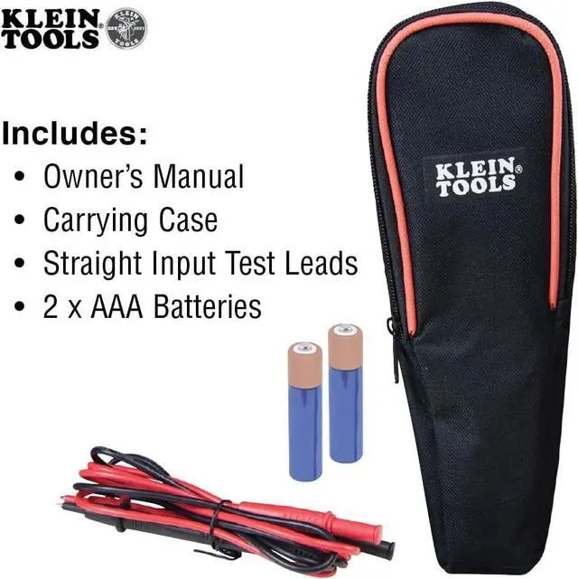 Includes a carrying case, test leads and 2 x AAA batteries