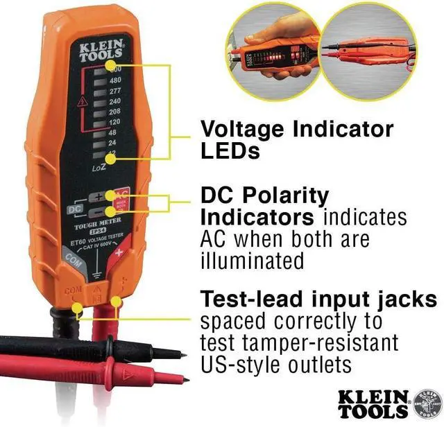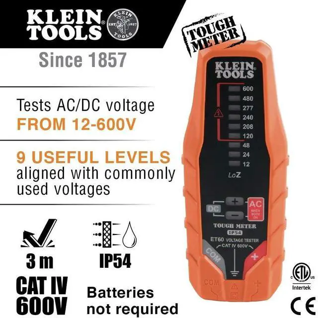 Klein Tools ET60 Voltage Tester, Tests AC/DC and Low Voltage, No Batteries Needed
