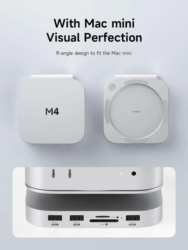: Crafted for the latest m4 mac mini, this hub and stand combination provides tight integration with the 2024 mac mini pro m4 desktop, offering passive cooling and ideal desk elevation.
