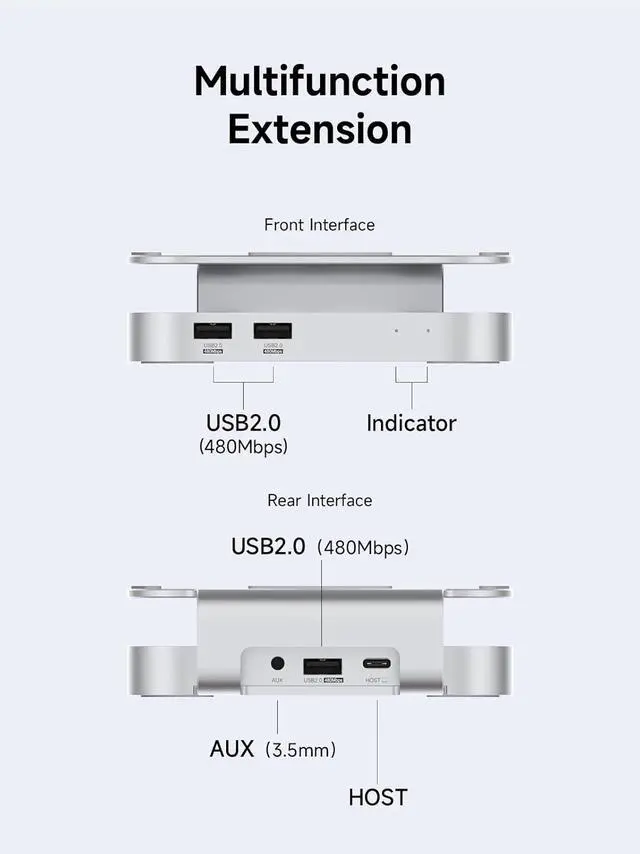 Multiple interfaces: Hagibis Mac mini M4 Dock with USB4 M.2 NVMe SSD enclosure , 480Mbps USB2.0 *3 and 3.5mm jack AUX ports. Can connect keyboard, mouse, U disk, headphone and microphone. Various interfaces meet all your needs