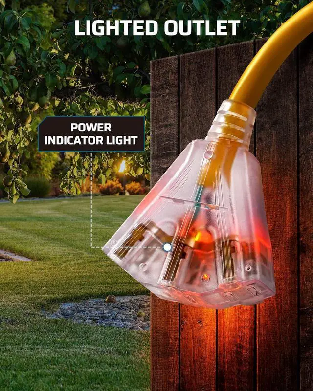 Lighted Extension Cord End LED indicator lights up when the cord is powered to let you know the GFCI extension cord is ready to use and easy to be found even in the dark; Built with all-copper wire, reinforced blades, and double jacketed cords; features full-molding design; certified to UL