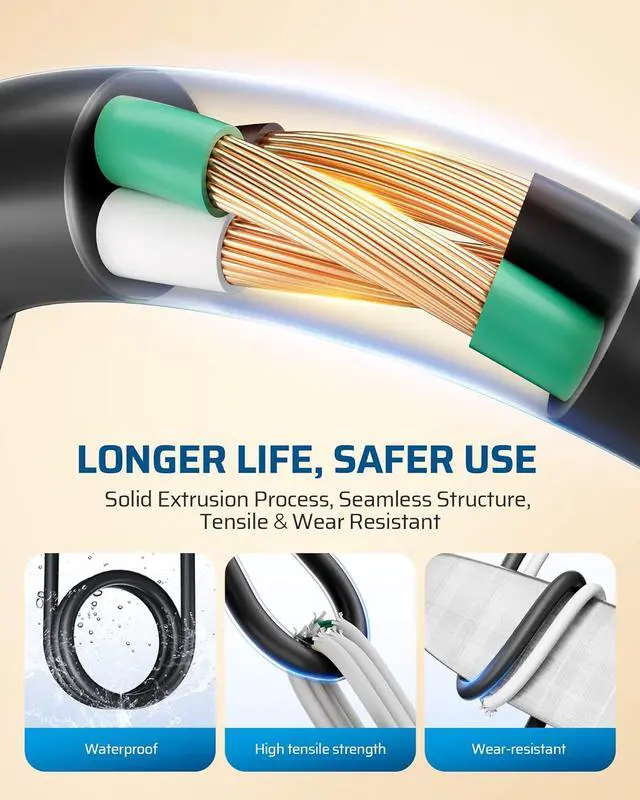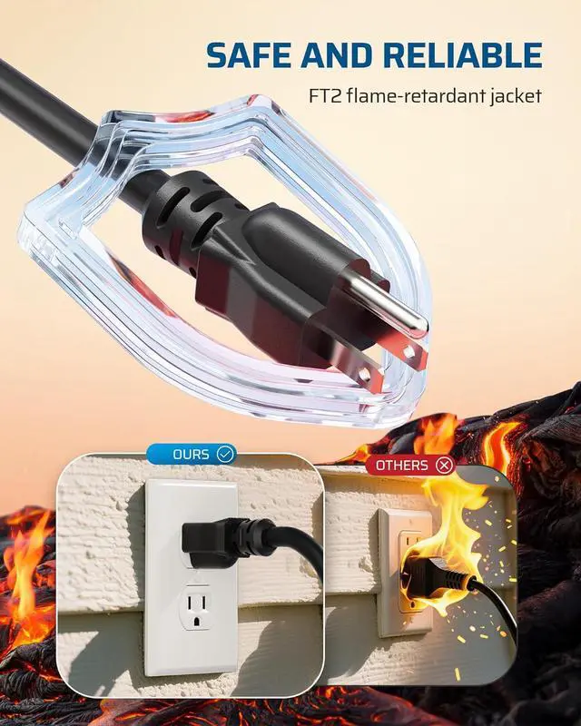 [Indoor/Outdoor Durability] Built with high-quality 14AWG SJTW wire, this power cord is weather-resistant and fire-resistant for stable current transmission and optimal performance; the black PVC jacket offers excellent abrasion and sunlight resistance, ideal for both indoor and outdoor use