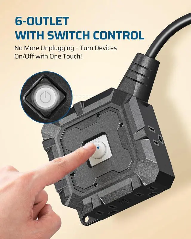 [ETL Listed for Reliable Safety] This outdoor extension cord is ETL certified to ensure dependable and secure performance; the switch with waterproof silicone cover lets you easily control all connected devices at onceeliminating the hassle of frequent plugging and unplugging