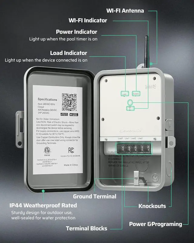 [Wide Compatibility] Elevate your smart home experience with this outdoor timers exceptional performance and broad compatibility; perfect for pool pumps, water heaters, pool filters, spas, irrigation systems, and landscape lighting, from daily pool maintenance to automatic garden irrigation; ETL & FCC certified