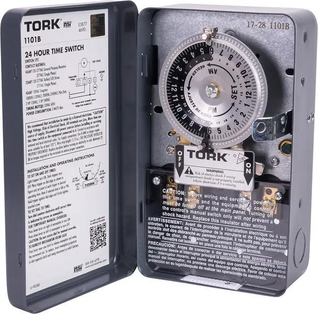 Input-Voltage of 120 VAC 60 Hz and output contacts is SPST with timing accuracy of Line frequency, terminal range of #8 - #14 AWG