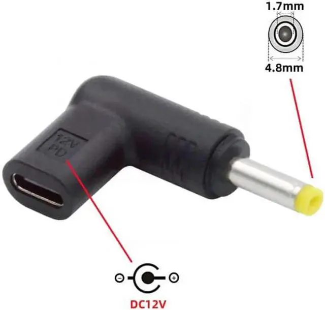 JVFYI USB 3.1 Type C USB-C Female to DC 12V 4.8x1.7mm Plug Adapter PD Emulator Trigger 90 Degree Angled