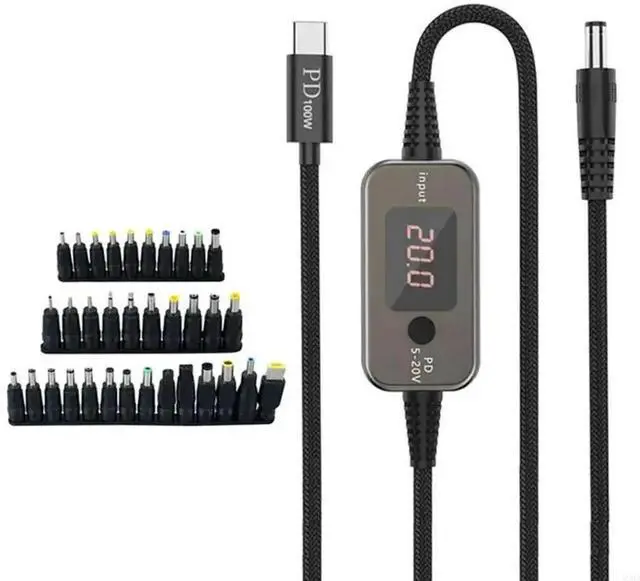 PD100W USB C to DC5525 Fast Charging Cord 5V 9V 12V 15V 20V 5A Adjustable Power Supply Cable With Multiple Adapters