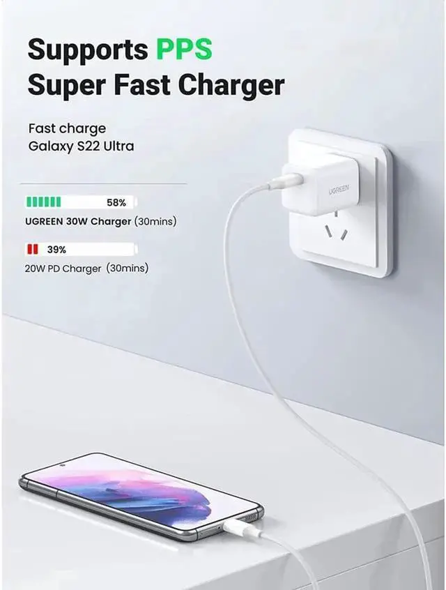 30W PD Fast Charging: Ditch your old 20W usb c charger and charge your iPhone 13 Pro Max at full speed, 0 to 60% in 30 mins, a MacBook Air from 0 to 100% in only 2 hours, the Google Pixel 6 to 50% in 37 minutes, and Super Fast Charge Galaxy products with the PPS protocol.