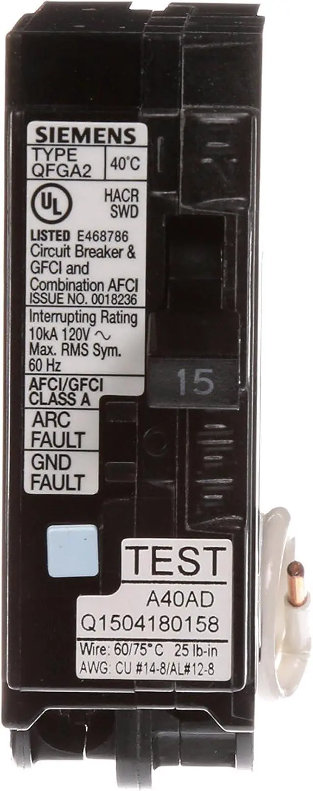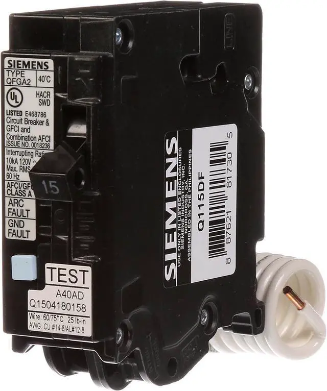 Siemens Q115DF 15-Amp Afci/Gfci Dual Function Circuit Breaker, Plug on Load Center Style