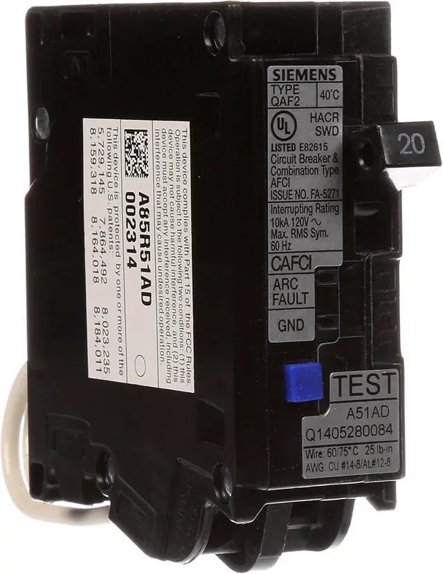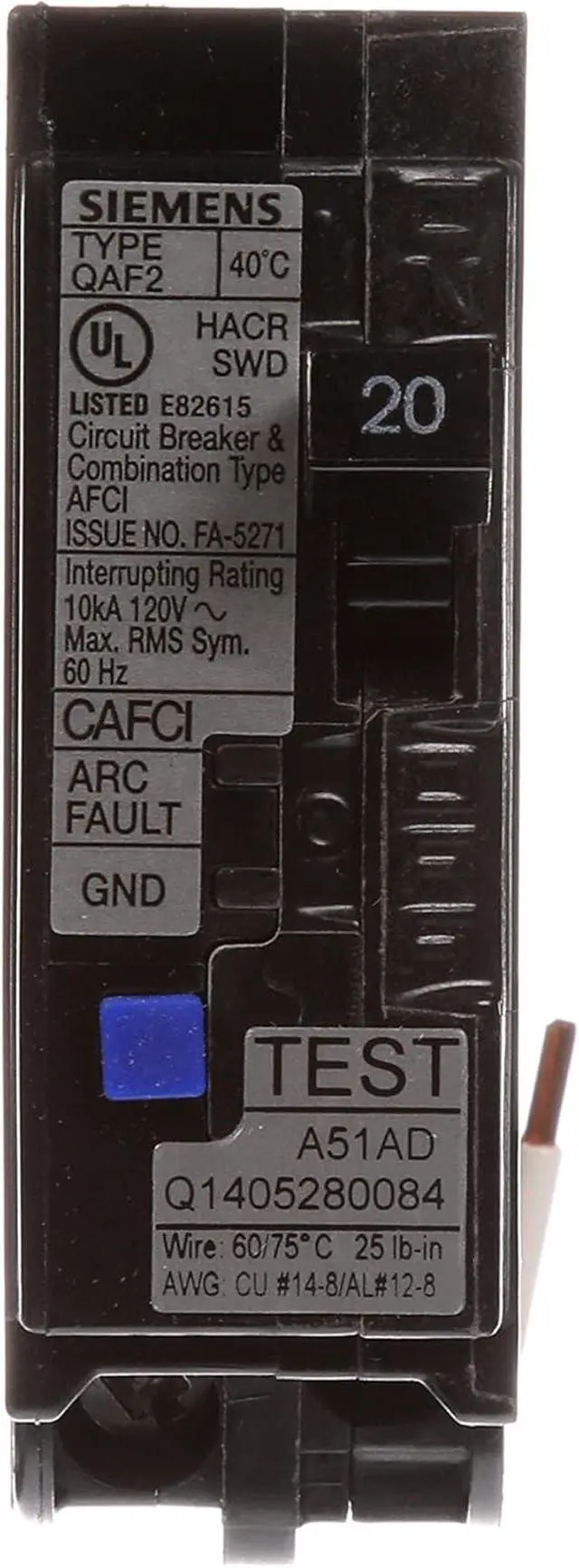 Single pole, 20 Amp, Combination type AFCI circuit breaker