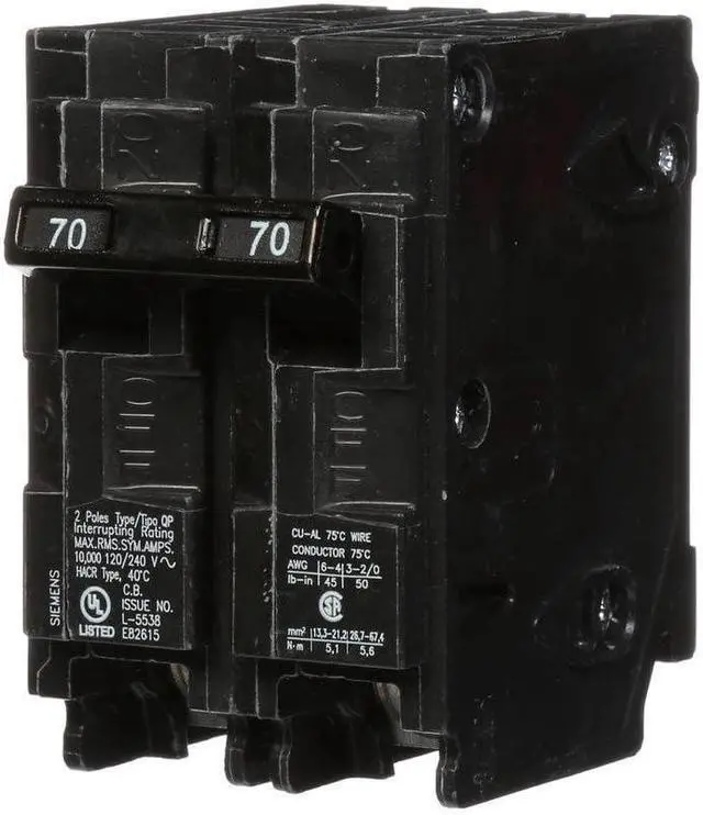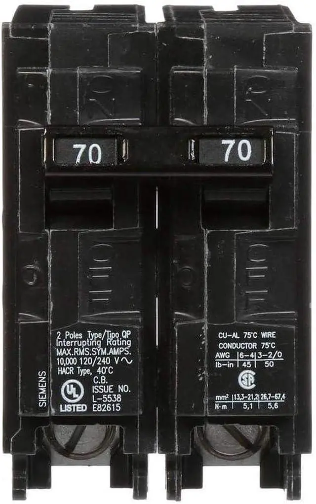 • Double pole, 70 Amp, 240V type QP Circuit Breaker
