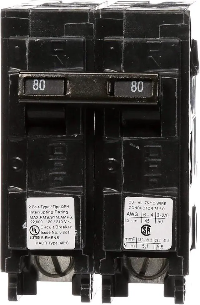 Double pole, 80 Amp, 240V type QPH Circuit Breaker