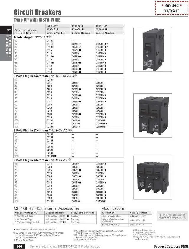 Compatible with Siemens PL and ES series load centers