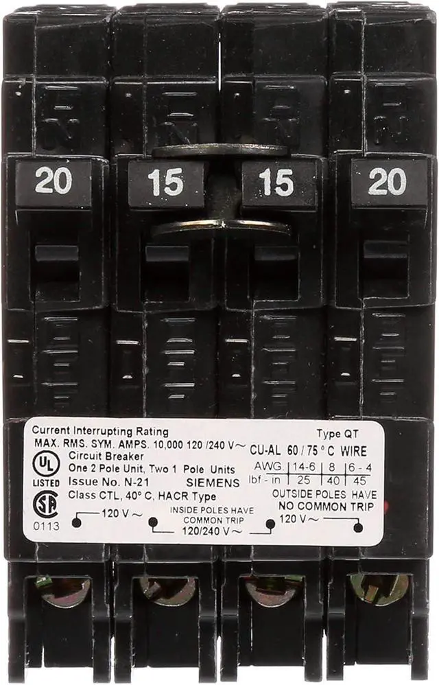 • Siemens Low Voltage Residential Circuit Breakers Miniature Thermal Mag Circuit Breakers - Duplex, Triplex, Quadplex are Circuit Protection Load Center Mains, Feeders, and Miniature Circuit Breakers