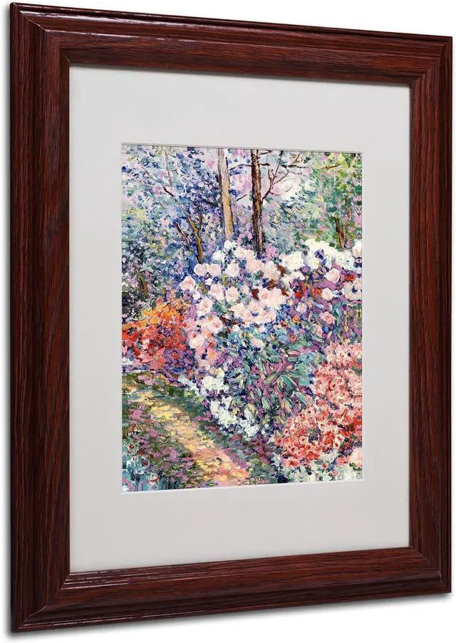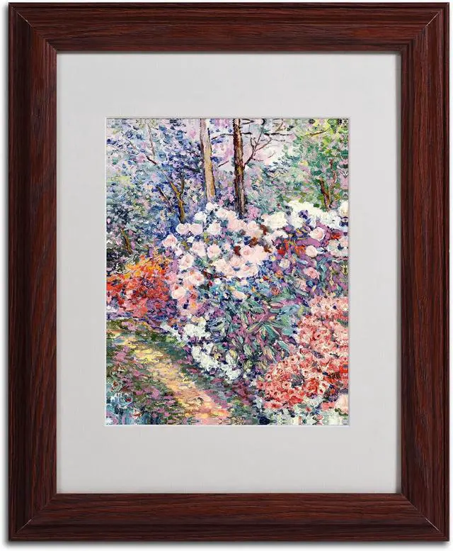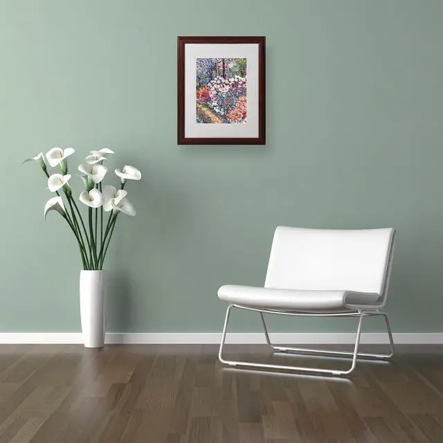 This ready to hang, matted framed art piece features colorful flowers in a forest. Manor Shadian was born in 1931 and from a very early age showed great potential as a painter. He studied art at the Israel Academy of Fine Art and later became a teacher himself, instructing both children and adults. Over the past sixty years he has done shows all over Europe, Scandinavia and the United States, winning awards and picking up even more valuable skills along the way. His works, a simple form of expressionism, are marked by vibrant color and peaceful landscapes. An 8x10 giclee print under acrylic in a 11x14 dark wood frame. Giclee (jee-clay) is an advanced printmaking process for creating museum quality fine art reproductions. This high quality print is matted using antique white matting and comes in a dark wooden frame. A clear acrylic facing is added to protect the print. The piece is fully assembled by professional frames and comes ready to hang. The antique white mat allows the image to really stand out, making it a great addition to any space.