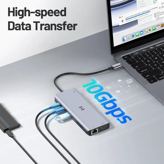 High-Speed Data Transfer: This USB C Docking Station 4 Monitors is equipped with multiple 10Gbps USB ports (both Type-A and Type-C) and a 1Gbps Gigabit Ethernet port, enabling high-speed data transfer. The SD and Micro SD card slots with speeds up to 104MB/s. The USB-C hub multiport adapter ensures quick transfer of multimedia files