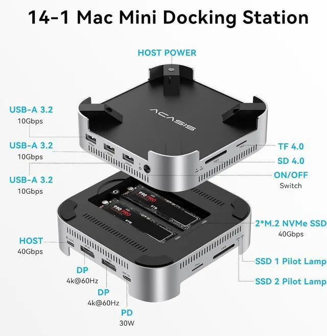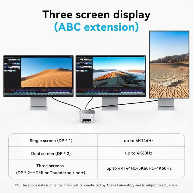 Dual/Triple Display SupportAlong with your Mac Mini M4s built-in HDMI or Thunderbolt port, supports up to 2/3 displays simultaneously with dual DisplayPort outputs supporting 4K@144Hz single screen or 4K@60Hz dual screen, for enhanced multitasking capabilities.