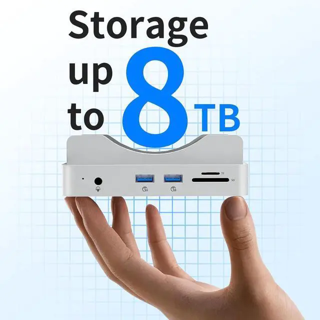 Up to 8TB storage expansion: The Mac mini M4 Dock built-in M.2 NVMe SSD bay(compatible with 2280 Size). With the PSE expand your Mac mini M4/M4 PRO storage up to 8TB (SSD not included). Supports 10Gbps NVMe speeds, enabling 1GB file transfers in 1s.