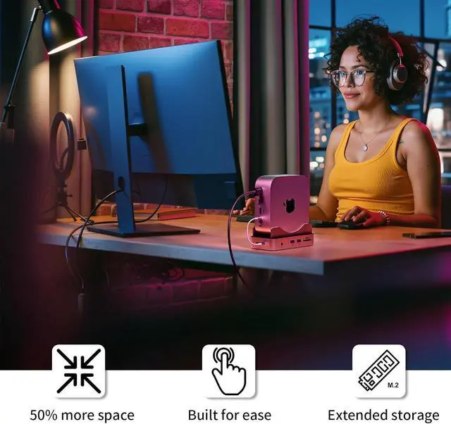 Save up to 45% desk space & enhanced cooling: The vertical stand frees up valuable workspace while improving heat dissipation through a side-out ventilation design. Natural upward airflow helps your Mac mini stay cooler and maintain long-term performance.