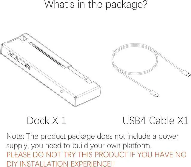 PACKAGE INCLUDED: 1x eGPU Dock;1x TB3/USB4 Cable;1x User Manual. (The product does not include graphics card, power supply, laptop. They are for effect display only.)